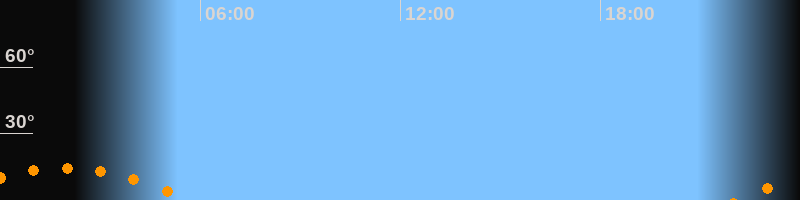 | Untergang | 05:42 Uhr im Südwesten (αAz = 229,3°) |