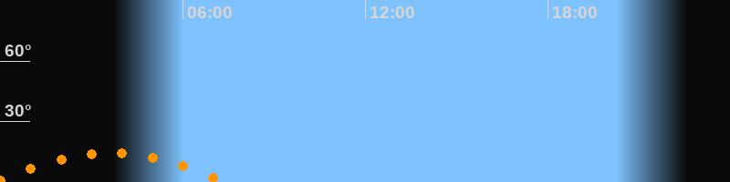 | Untergang | 07:23 Uhr im Südwesten (αAz = 229,3°) |