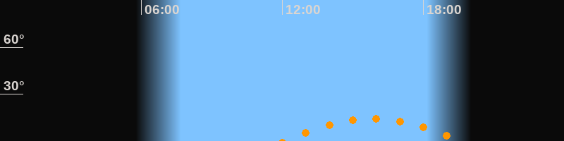 | Aufgang | 12:04 Uhr im Südosten (αAz = 130,7°) |