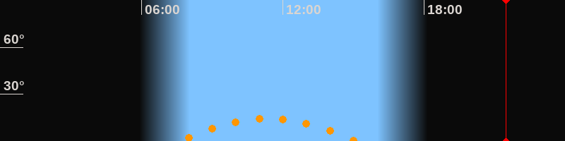 | Höchster Stand (Kulmination) | 11:22 Uhr (h = 14,4°) |