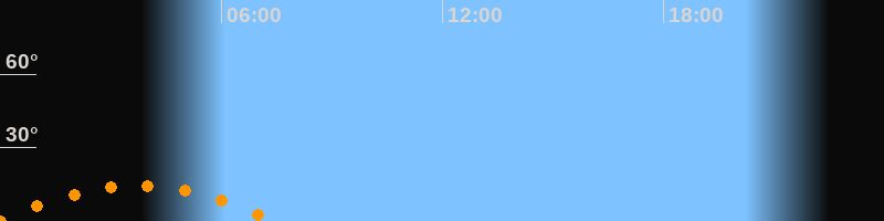 | Untergang | 07:29 Uhr im Südwesten (αAz = 229,3°) |