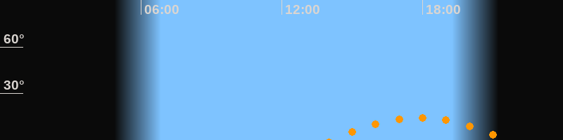| Aufgang | 14:04 Uhr im Südosten (αAz = 130,7°) |