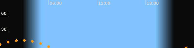 | Aufgang | 22:51 Uhr im Südosten (αAz = 130,7°) |