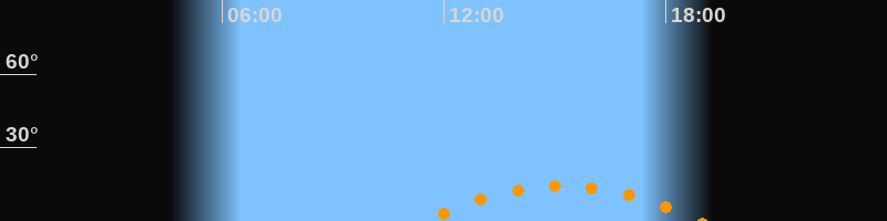 | Aufgang | 11:27 Uhr im Südosten (αAz = 130,7°) |