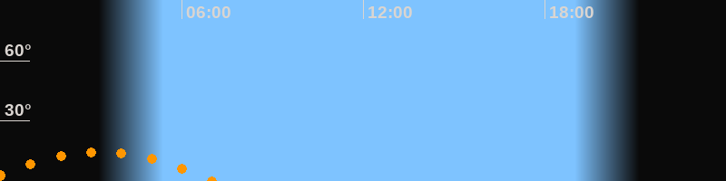 | Aufgang | 23:27 Uhr im Südosten (αAz = 130,7°) |