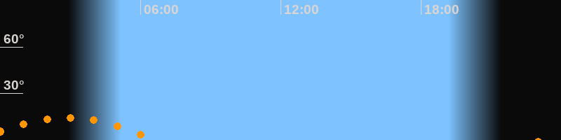 | Untergang | 06:36 Uhr im Südwesten (αAz = 229,3°) |