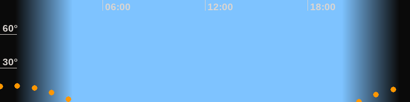 | Untergang | 04:27 Uhr im Südwesten (αAz = 229,3°) |