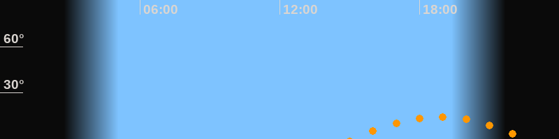 | Untergang | 22:37 Uhr im Südwesten (αAz = 229,3°) |