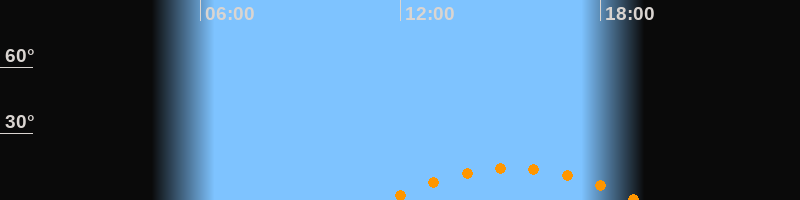 | Aufgang | 11:37 Uhr im Südosten (αAz = 130,7°) |