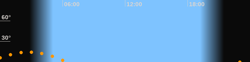 | Untergang | 06:29 Uhr im Südwesten (αAz = 229,3°) |