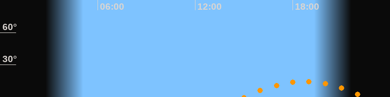 | Untergang | 22:30 Uhr im Südwesten (αAz = 229,3°) |