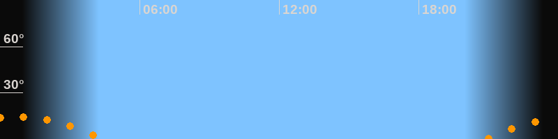 | Untergang | 04:29 Uhr im Südwesten (αAz = 229,3°) |
