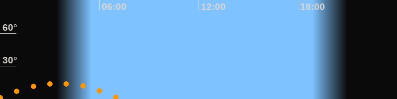 | Aufgang | 23:43 Uhr im Südosten (αAz = 130,7°) |