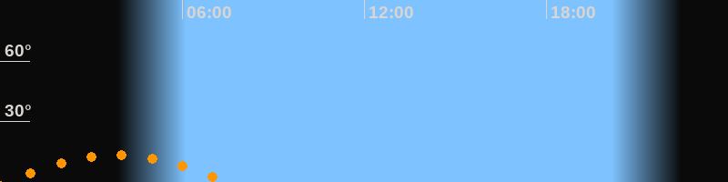 Aufgang00:08 Uhr im Südosten (αAz = 132,8°)