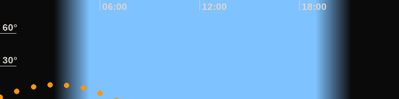Aufgang23:37 Uhr im Südosten (αAz = 132,8°)