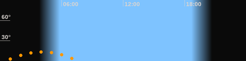 Untergang07:44 Uhr im Südwesten (αAz = 227,2°)