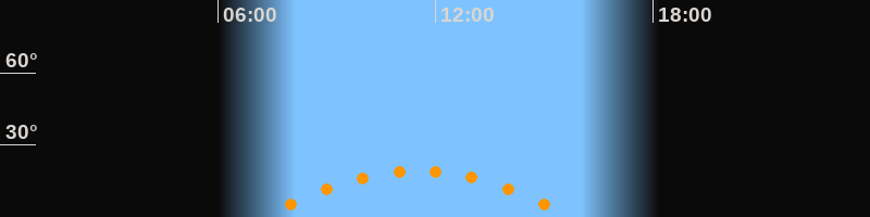 | Höchster Stand (Kulmination) | 11:31 Uhr (h = 19,1°) |