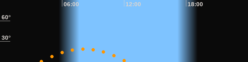 | Höchster Stand (Kulmination) | 08:04 Uhr (h = 19,1°) |
