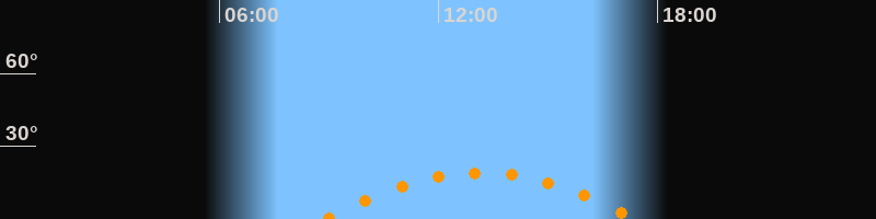 | Höchster Stand (Kulmination) | 13:09 Uhr (h = 19,1°) |