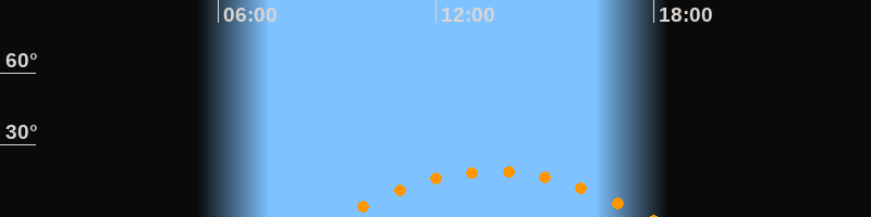 | Höchster Stand (Kulmination) | 13:35 Uhr (h = 19,1°) |