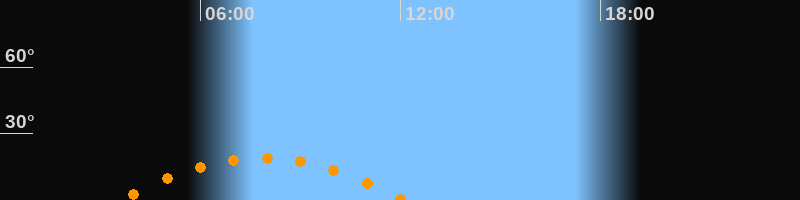 | Höchster Stand (Kulmination) | 07:50 Uhr (h = 19,1°) |