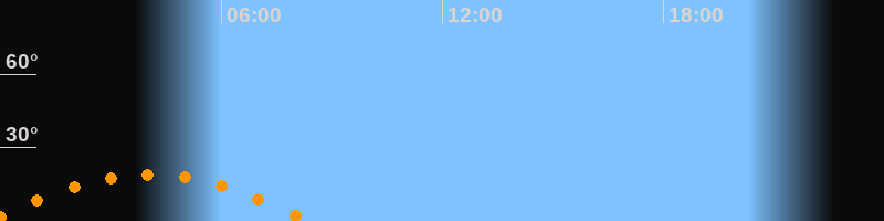 | Untergang | 08:20 Uhr im Südwesten (αAz = 237,8°) |
