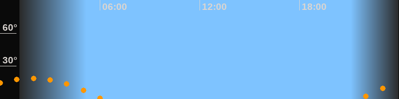 | Untergang | 06:10 Uhr im Südwesten (αAz = 237,8°) |