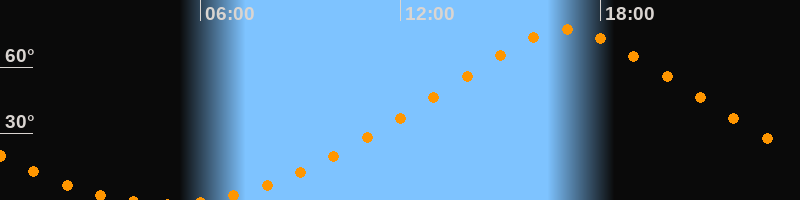 | Höchster Stand (Kulmination) | 16:59 Uhr (h = 76,9°) |