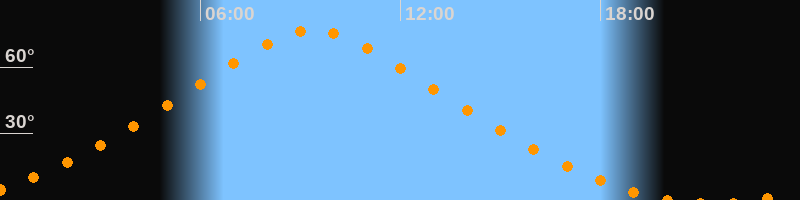 | Höchster Stand (Kulmination) | 09:23 Uhr (h = 76,9°) |