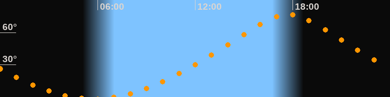 | Höchster Stand (Kulmination) | 17:44 Uhr (h = 76,9°) |
