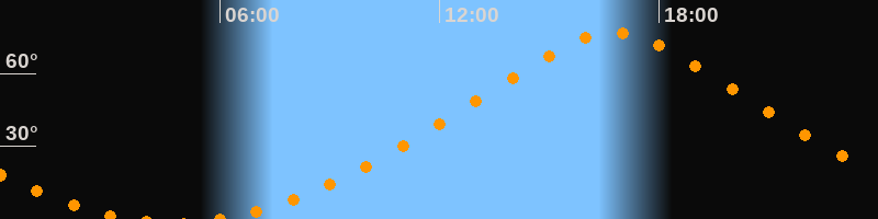| Höchster Stand (Kulmination) | 16:45 Uhr (h = 76,9°) |