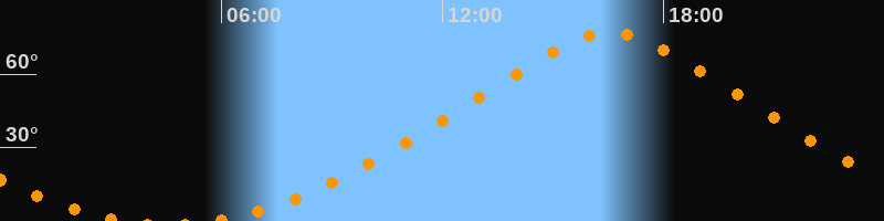 | Höchster Stand (Kulmination) | 16:33 Uhr (h = 76,9°) |