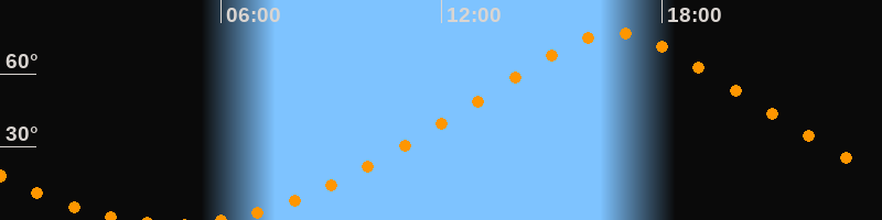 | Höchster Stand (Kulmination) | 16:43 Uhr (h = 76,9°) |
