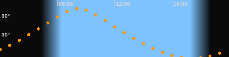 | Höchster Stand (Kulmination) | 08:10 Uhr (h = 76,9°) |