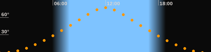| Höchster Stand (Kulmination) | 11:58 Uhr (h = 76,9°) |