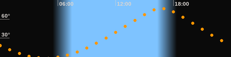 | Höchster Stand (Kulmination) | 16:45 Uhr (h = 76,9°) |