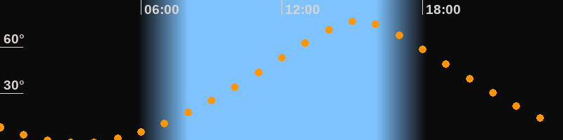 | Höchster Stand (Kulmination) | 15:16 Uhr (h = 76,9°) |