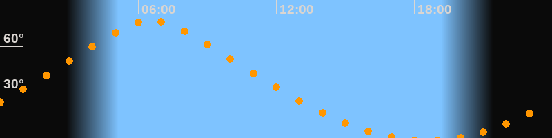 | Höchster Stand (Kulmination) | 06:34 Uhr (h = 76,9°) |