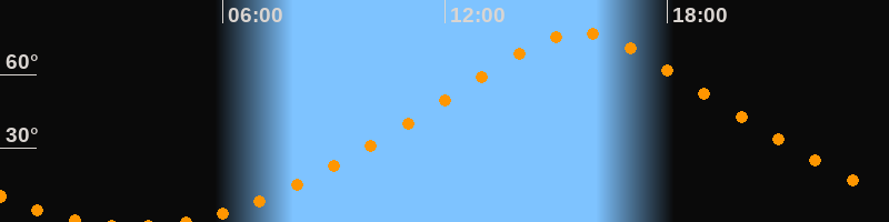 | Höchster Stand (Kulmination) | 15:38 Uhr (h = 76,9°) |