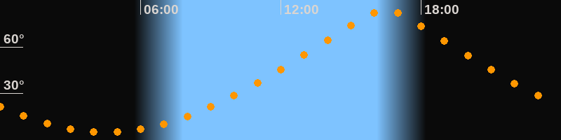 Höchster Stand (Kulmination)16:29 Uhr (h = 83,6°)