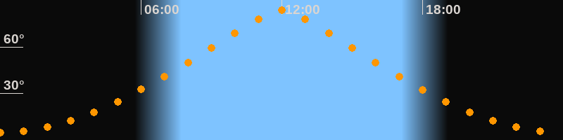 Höchster Stand (Kulmination)11:59 Uhr (h = 83,6°)