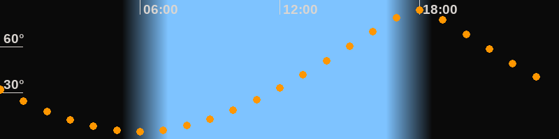 Höchster Stand (Kulmination)17:54 Uhr (h = 83,6°)