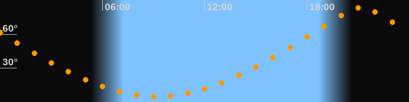 Höchster Stand (Kulmination)21:11 Uhr (h = 83,6°)