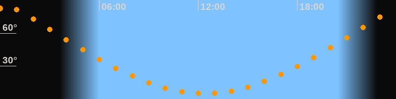 Höchster Stand (Kulmination)00:21 Uhr (h = 83,6°)