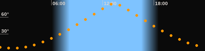 Höchster Stand (Kulmination)13:21 Uhr (h = 83,6°)