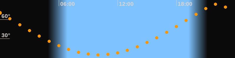 Höchster Stand (Kulmination)22:06 Uhr (h = 83,6°)