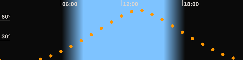 | Höchster Stand (Kulmination) | 13:41 Uhr (h = 74,6°) |