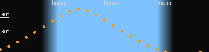 | Höchster Stand (Kulmination) | 09:05 Uhr (h = 74,6°) |