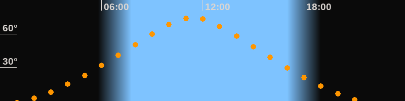 | Höchster Stand (Kulmination) | 11:23 Uhr (h = 74,6°) |