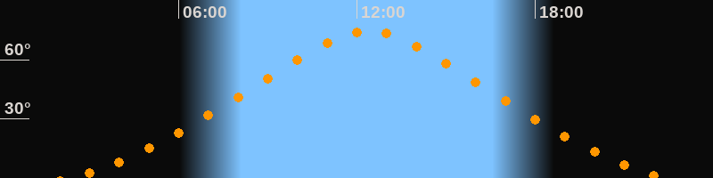 | Höchster Stand (Kulmination) | 12:23 Uhr (h = 74,6°) |